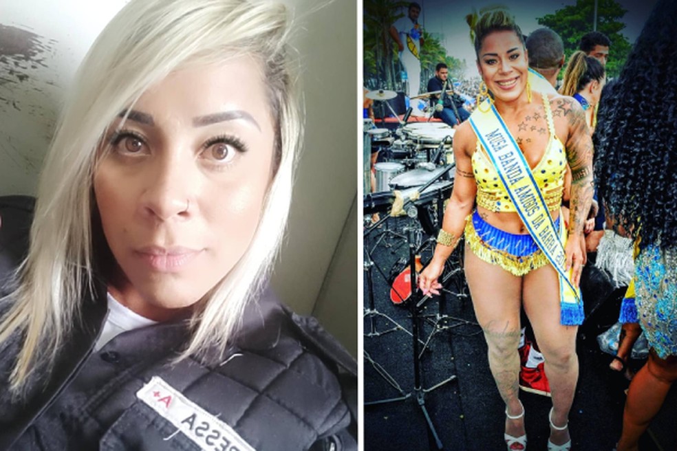 Andressa de farda e como musa da Banda da Banda da Barra, quando estava de licença: policial postou de salto — Foto: Reprodução/Redes sociais