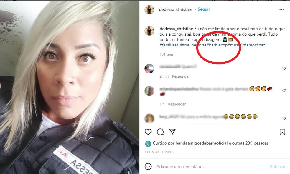 Andressa Christine Medeiros dos Santos estava na Polícia Militar desde 2010, e em postagem em rede social chegou a se apresentar como 'Barbiecop'.