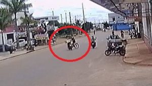 Acidente envolvendo um motoboy e um ciclista aconteceu nesta terça-feira, 15, na Avenida Rondônia, próximo ao mercado Rondônia e foi registrado pelas câmeras de segurança do estabelecimento comercial.